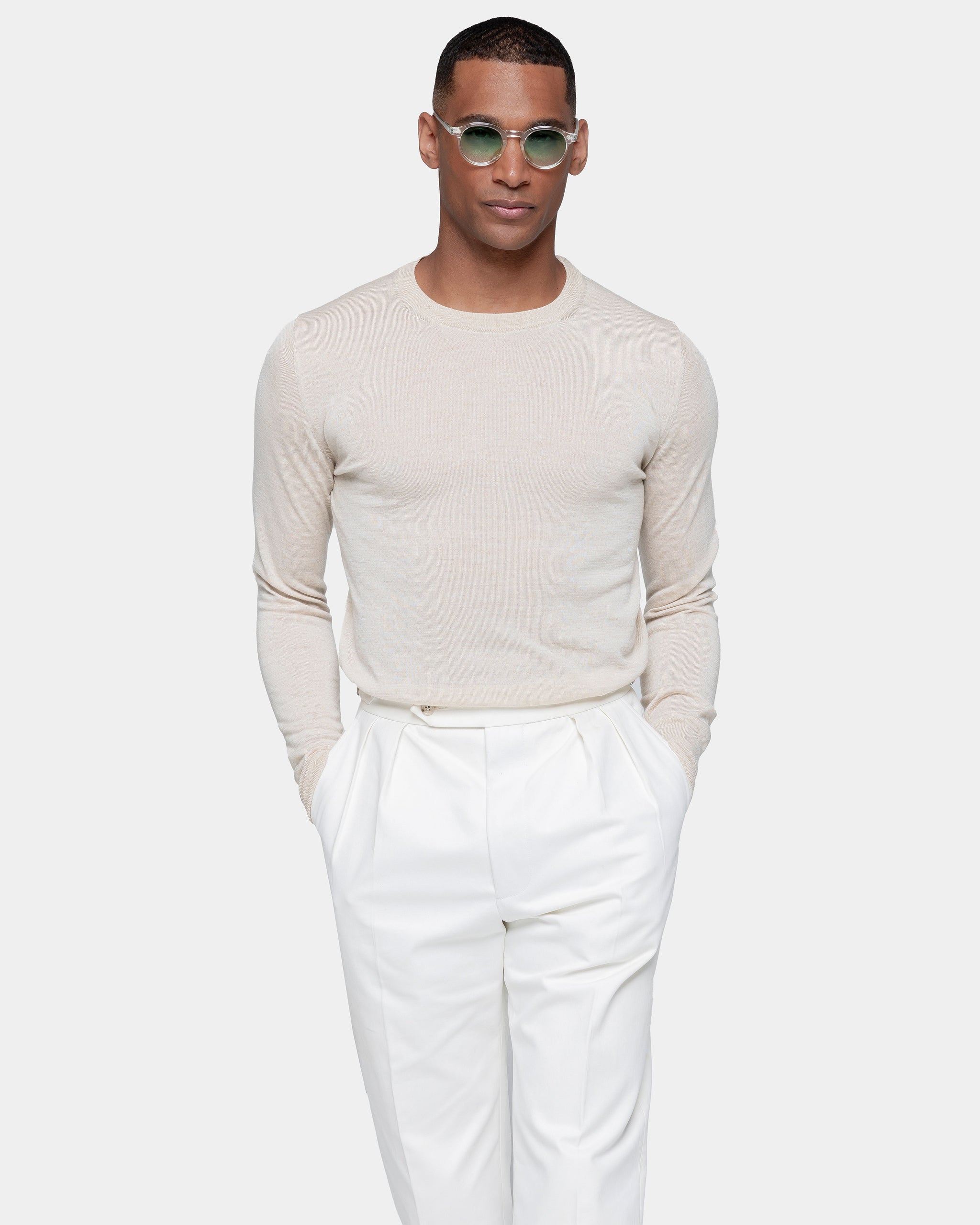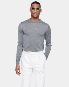 Discover our collection of made-to-measure knits in extra-fine Merino Wool and Silk 2/48. Available in crew neck, polo neck with mother-of-pearl buttons, mock neck, and hoodie styles. The luxurious blend of extra-fine Merino Wool and Silk by Filatori gives the sweater a sleek appearance, with the precious mix highlighting the brilliance of the silk.
