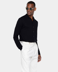 Black Long Sleeved Shirt Knitwear in Organic Cotton Mulberry Silk | Filatori