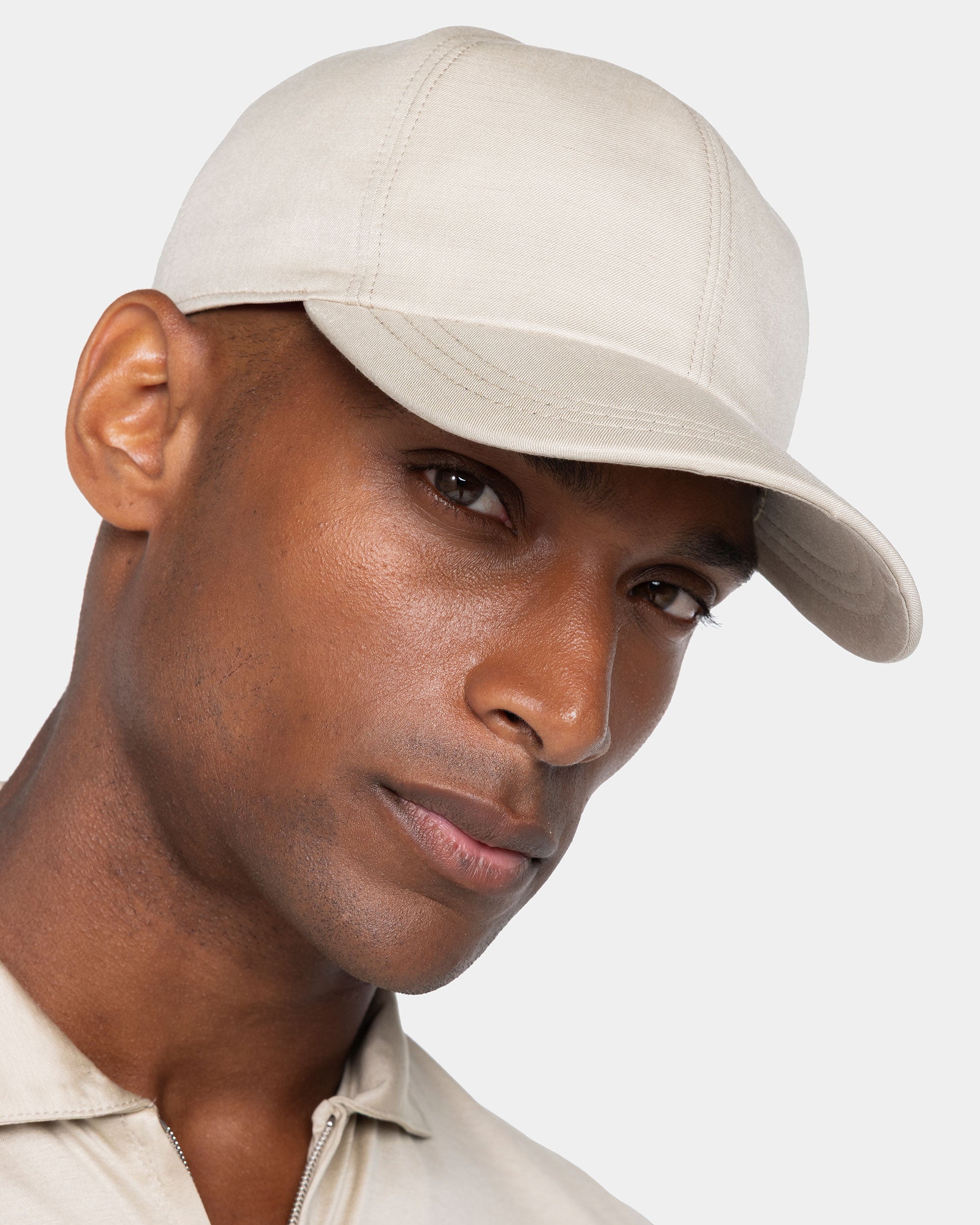 A six-panel custom-made baseball cap crafted the finest linen-silk, a symbol of excellence in Italian craftsmanship and the production of premium fabrics. This exclusive accessory combines warmth, softness, and unparalleled style, offering an ideal solution to face the day with elegance.