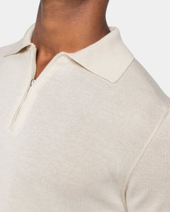 Sand Short Sleeve Zip Polo Knitwear in Organic Cotton Mulberry Silk | Filatori