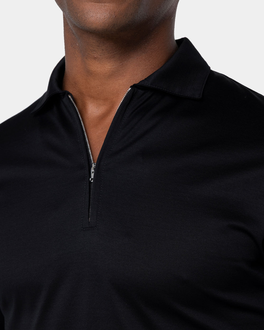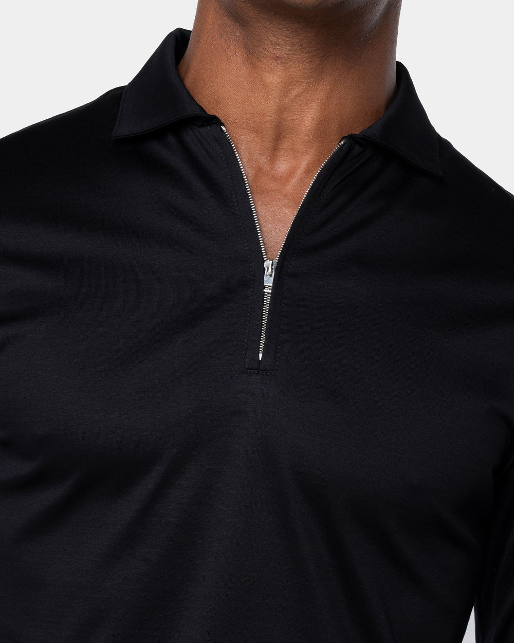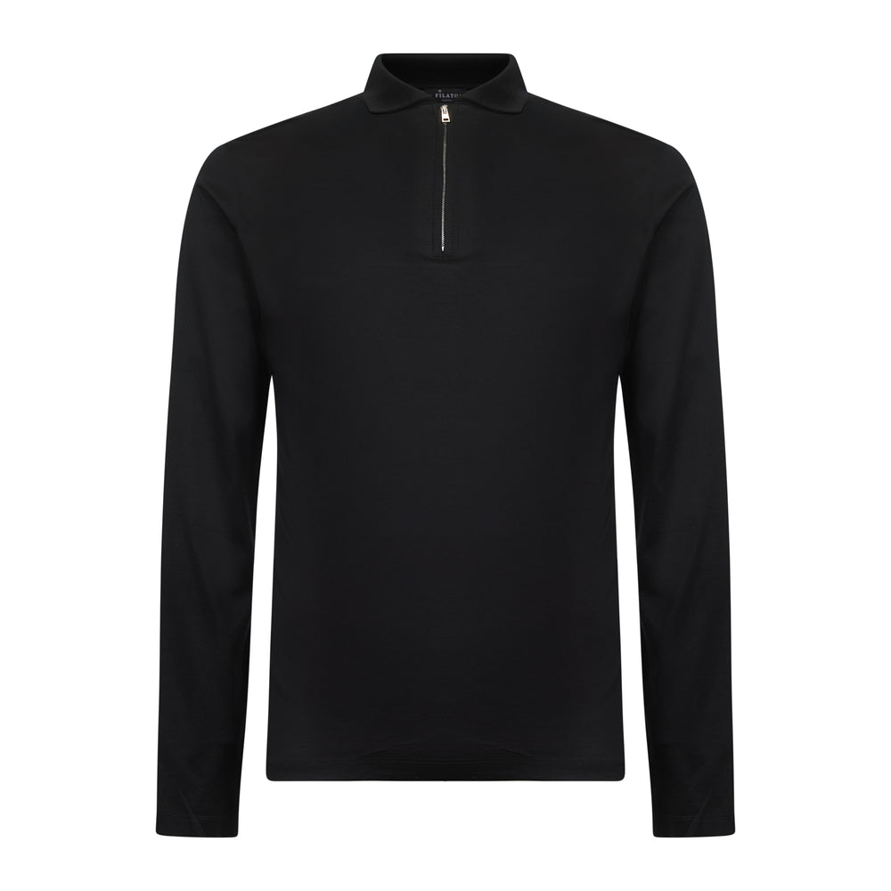 Black Long Sleeve Half Zip Polo 100% Egyptian Cotton | Filatori