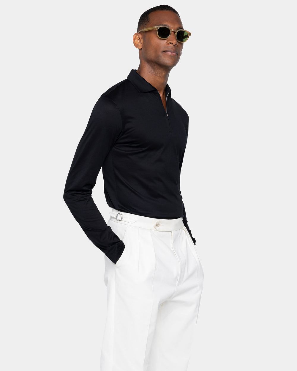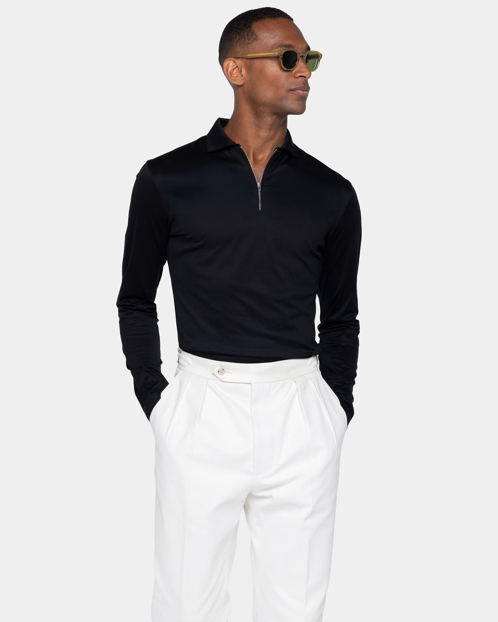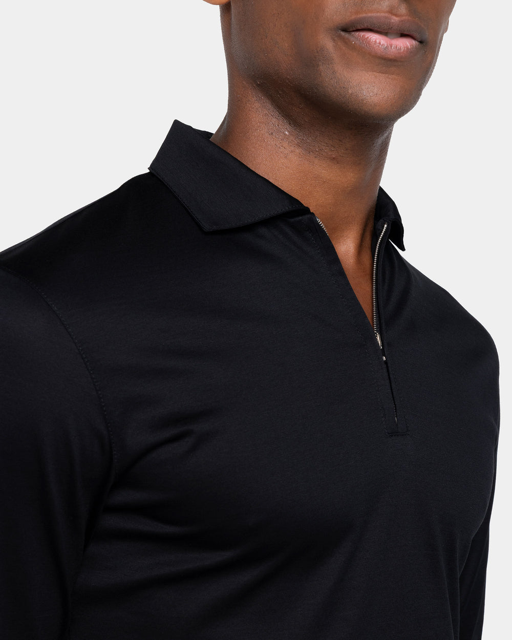 Black Long Sleeve Half Zip Polo 100% Egyptian Cotton | Filatori