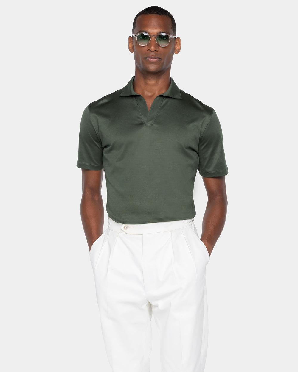 Military Green Short Sleeve Buttonless Polo 100% Egyptian Cotton | Filatori