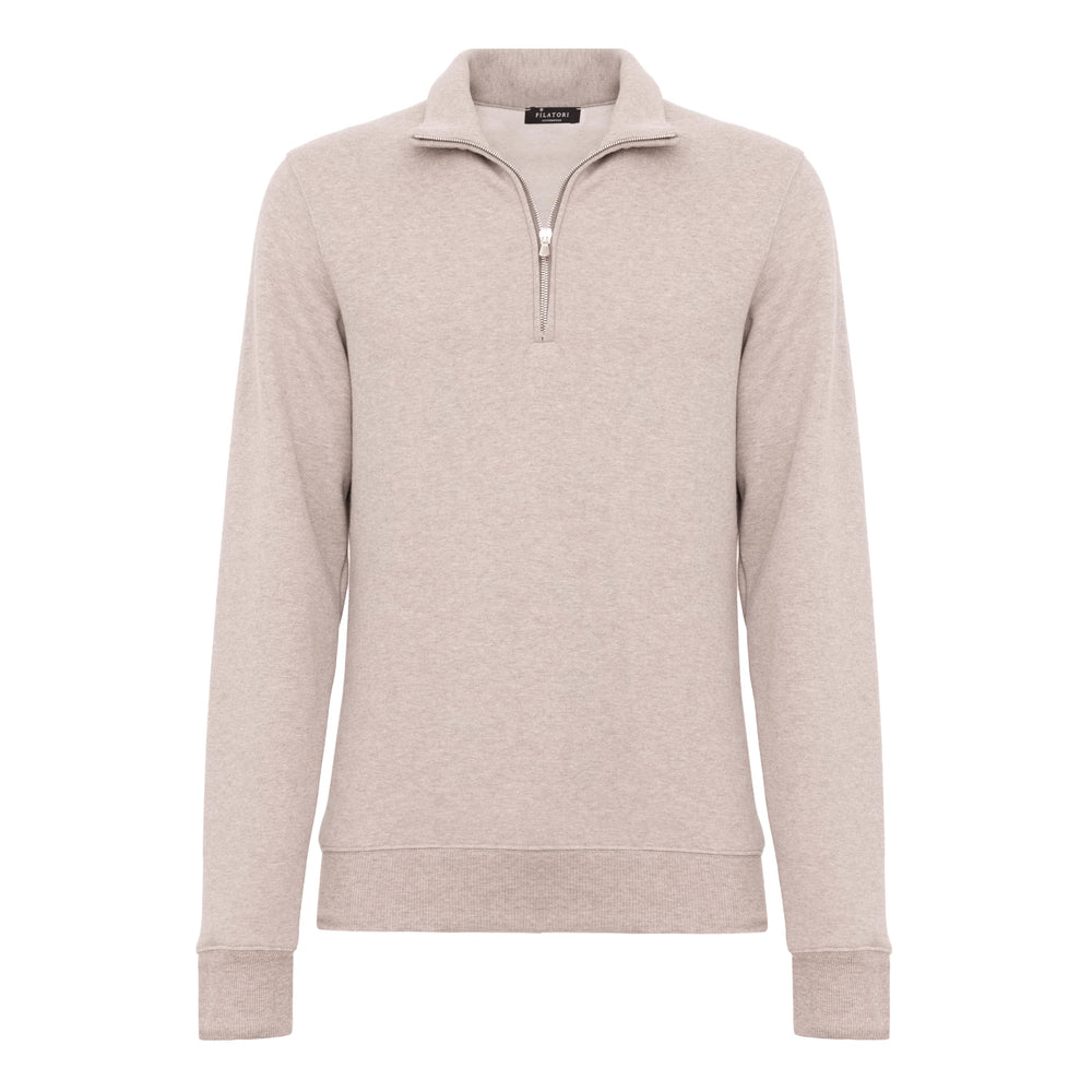 Crafted from Cashcott jersey fabric dyed yarn 95% cotton 30/1 - 5% Cashmere, by the Italian weaver Maglificio Maggia, with a weight of 280 g/sqm, it is extra soft and luxurious to the touch, perfect for elevating your casual look. This garment is the result of Filatori's loyalty to the pursuit of excellence and is characterized by high attention to finishes and details. The visible stitching under the neckline and on the shoulder lend a touch of additional tailoring to the garment. The neckline features an opening with a Made in Italy metal zipper, showcasing advanced technology and meticulous attention to detail. A result of an exclusive production process, each pre-formed piece, scratch-resistant and snag-proof, is applied one by one, ensuring the smoothest possible movement of the slider along the chain.