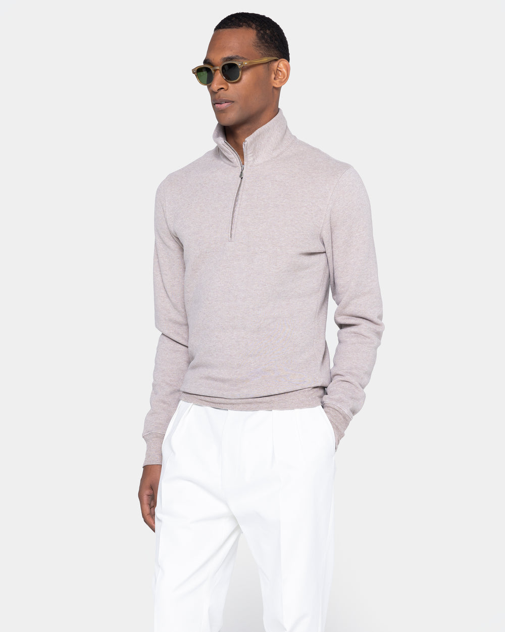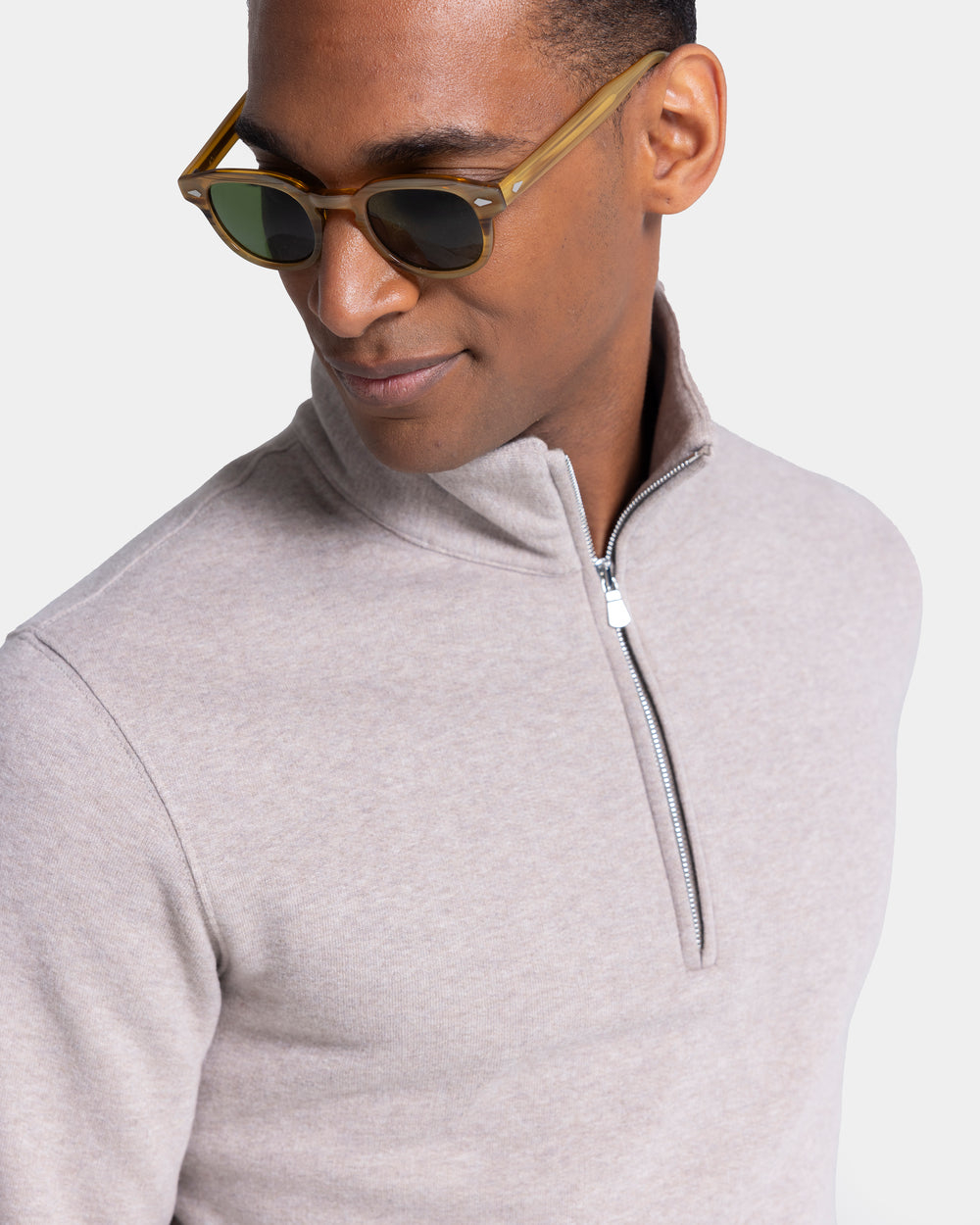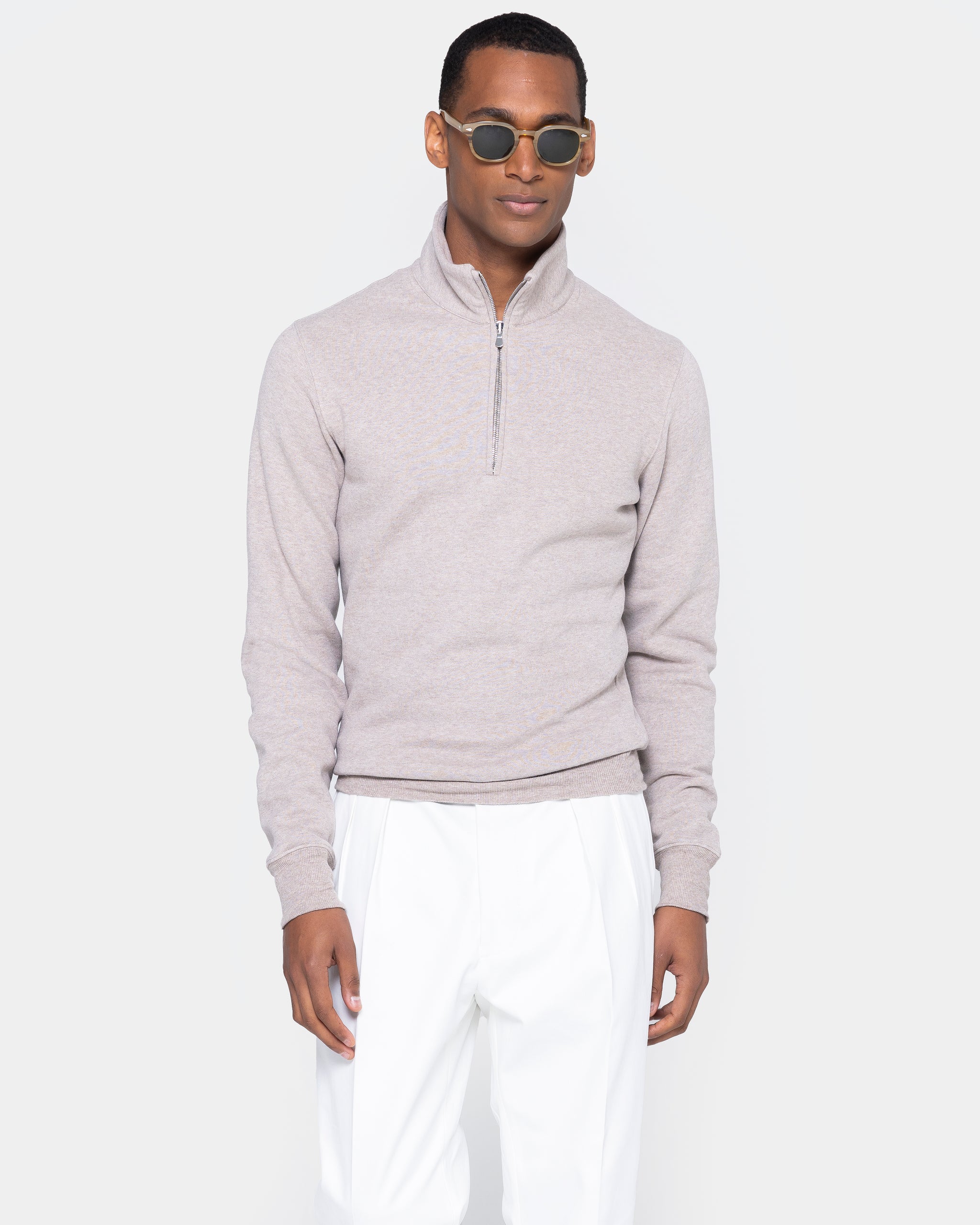 An Half-Zip sweatshirt is an excellent foundation for a relaxed style.