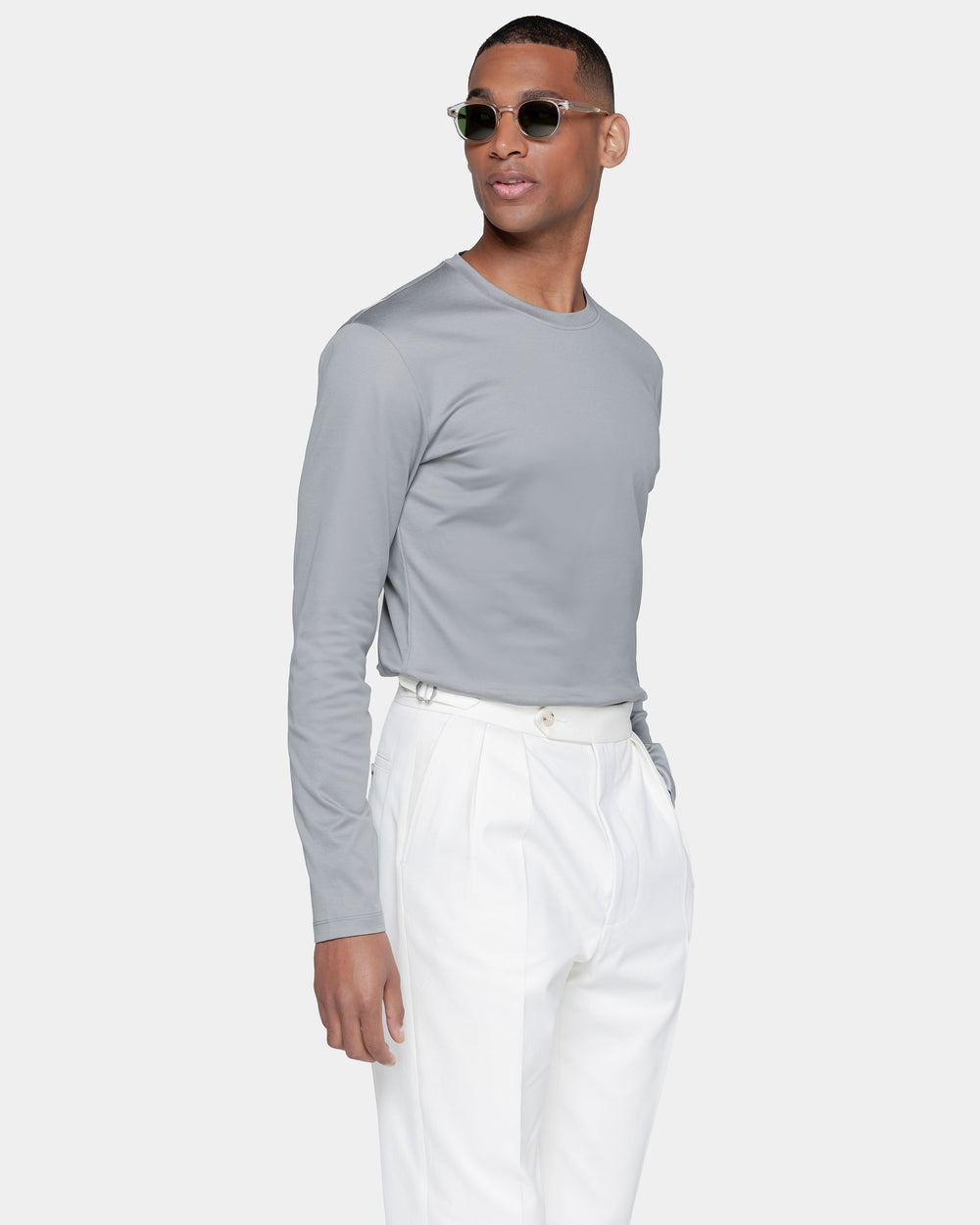 A long sleeved T-shirt is a great base for a relaxed style.