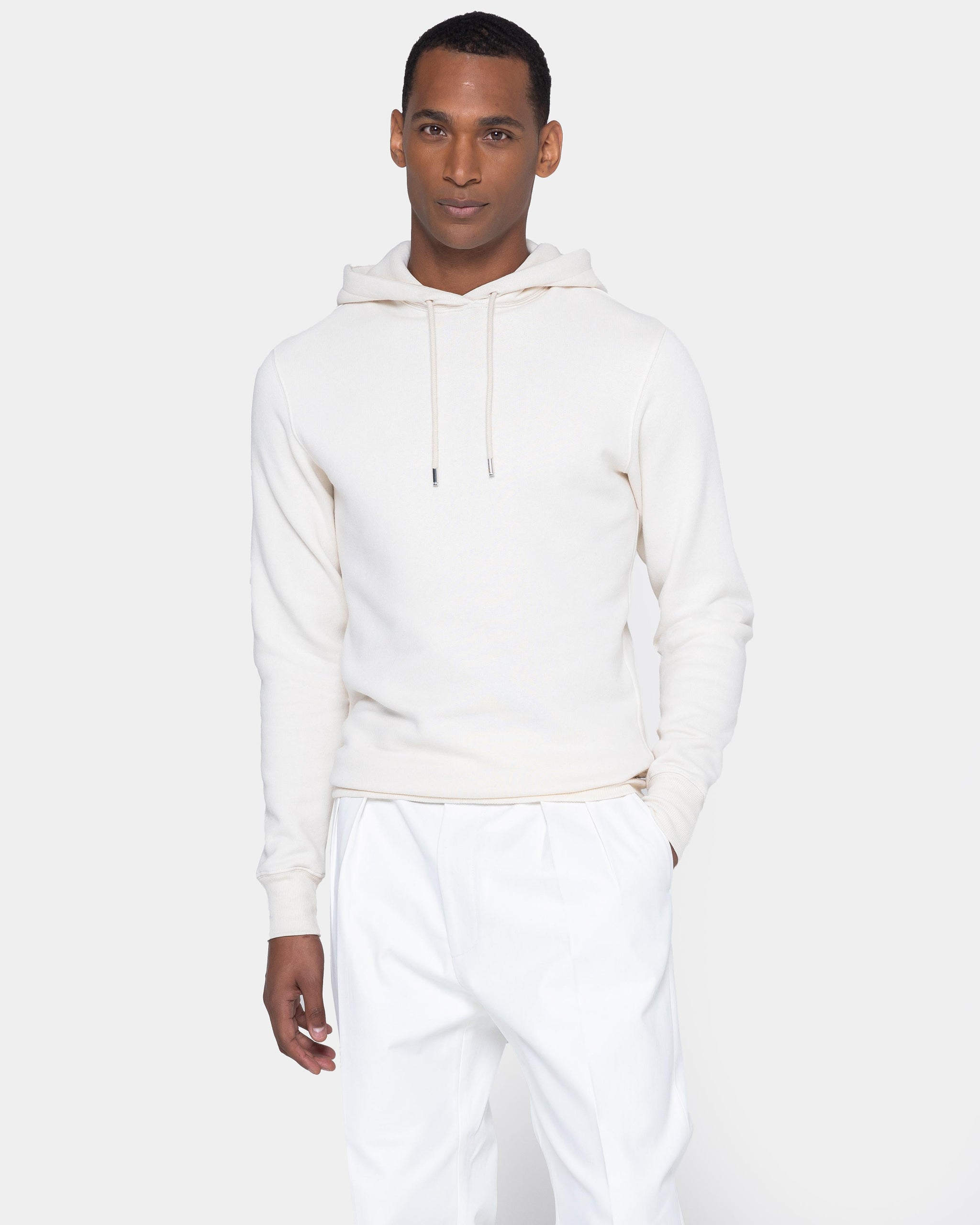 Realizzata in tessuto jersey Cashcott tinto filo 95% cotone 30/1 - 5% Cashmere, della tessitura italiana Maglificio Maggia, dal peso di 280 g/mq, risulta extra morbido e lussuoso al tatto, perfetto per elevare il tuo casual look. Questo capo è il risultato della fedeltà Filatori per la ricerca dell'eccellenza e si caratterizza per un'elevata cura delle rifiniture e dei dettagli. Le cuciture a vista sotto lo scollo e sul giro-spalla donano un tocco di sartorialità aggiuntiva al capo. Il cappuccio si presenta completamente in tessuto, anche nella parte interna, dettaglio che dona un maggiore preziosità al capo, oltre che con corda in tinta 100% cotone con finali in metallo nichel free laserati con logo Filatori.
