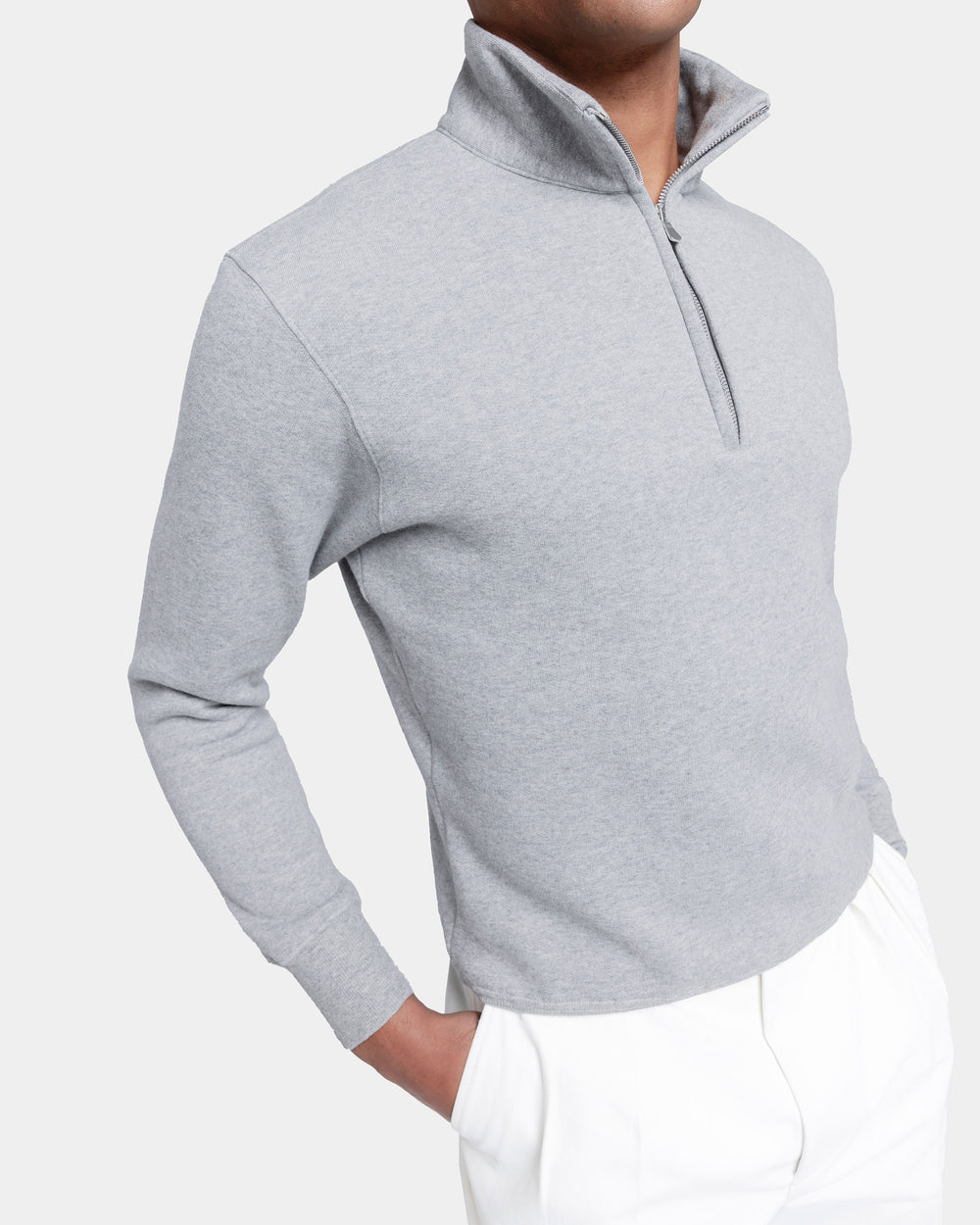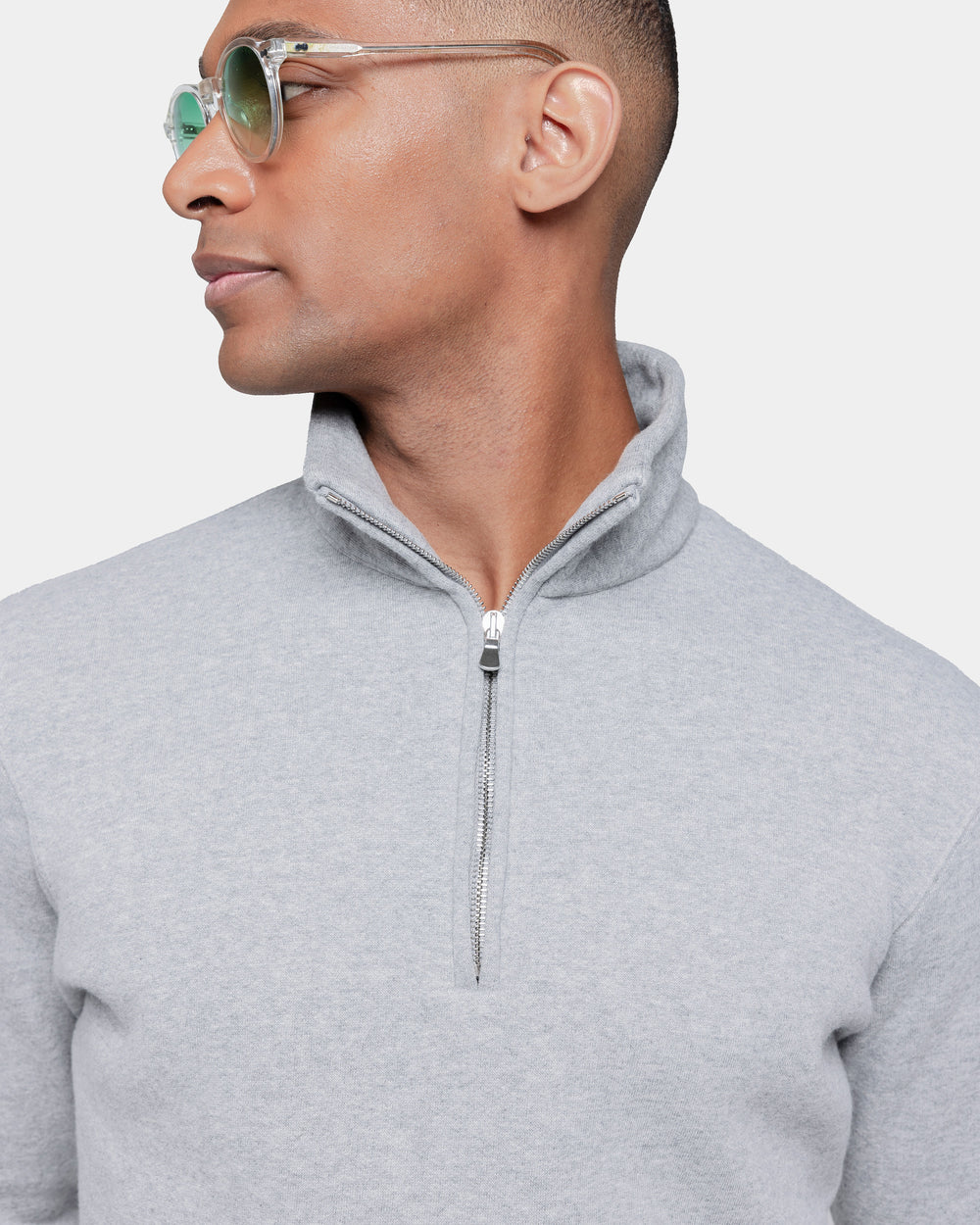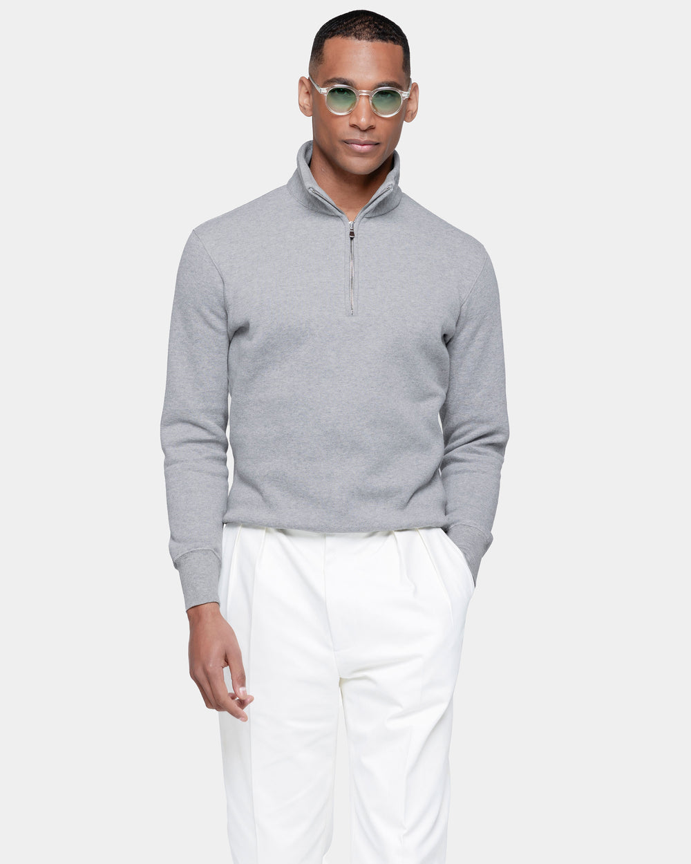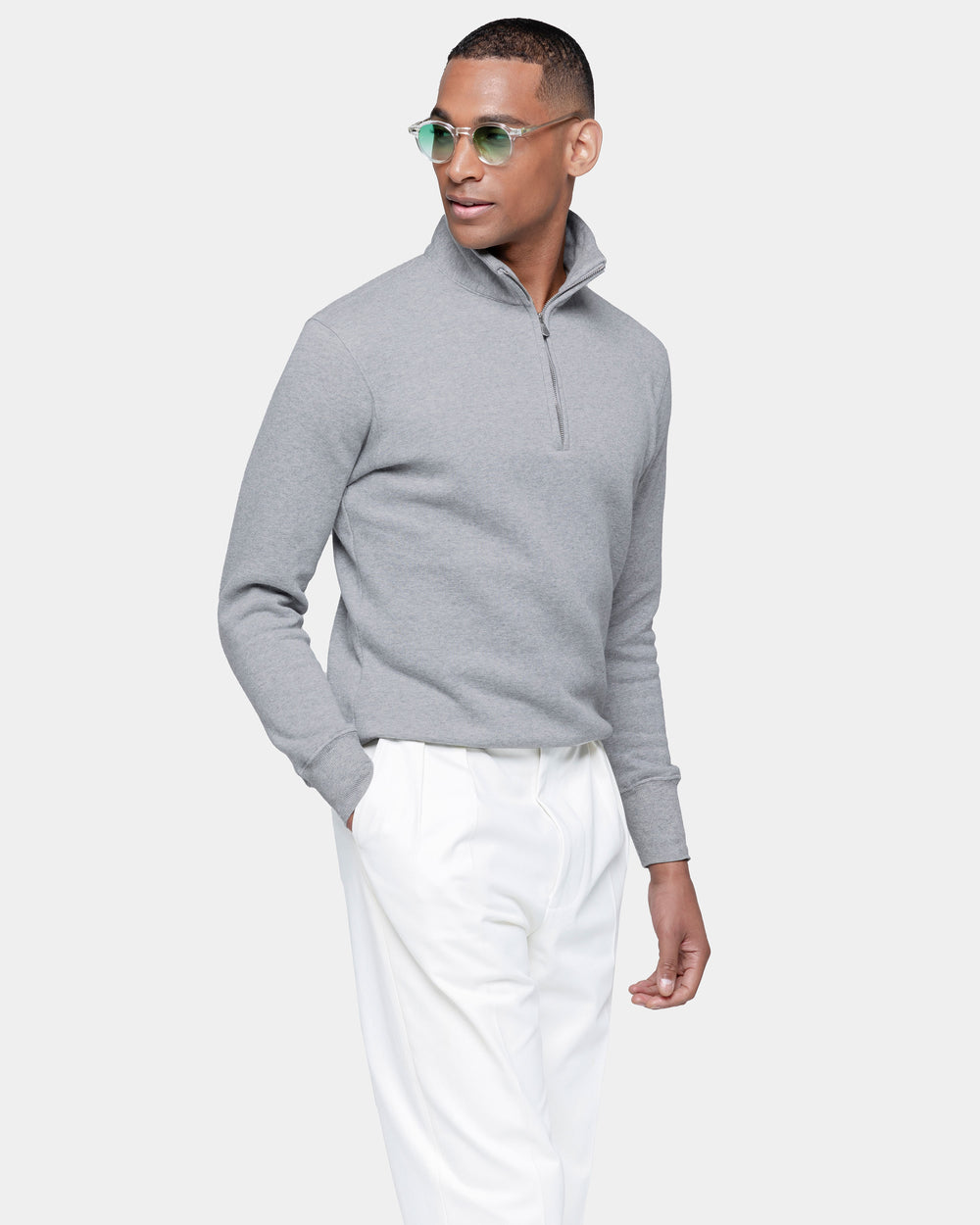 Una felpa mezza zip è un'ottima base per uno stile rilassato.