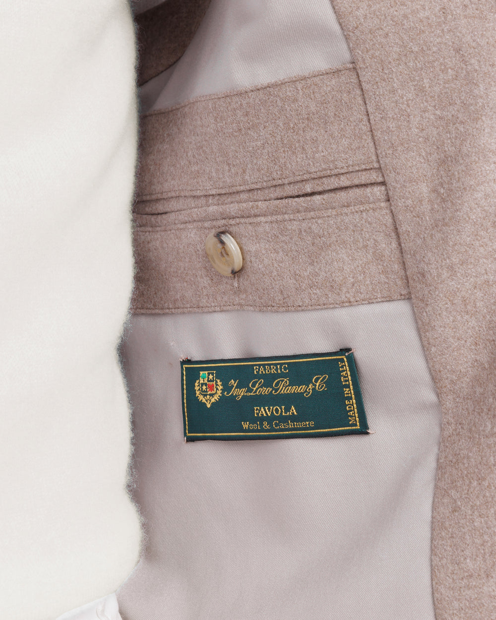 Il tessuto esterno in lanacashmere "Favola" proveniente dalla tessitura Loro Piana unisce morbidezza, leggerezza e protezione naturale dall’umidità, mentre l’interno in pura lana Super 120’s Vitale Barberis Canonico Sunny Season garantisce traspirabilità e comfort termico. Il risultato è un capo ultra leggero ma caldo, pensato per una vestibilità classica aderente che consente di indossarlo da solo o sotto un altro capo senza creare volume superfluo.