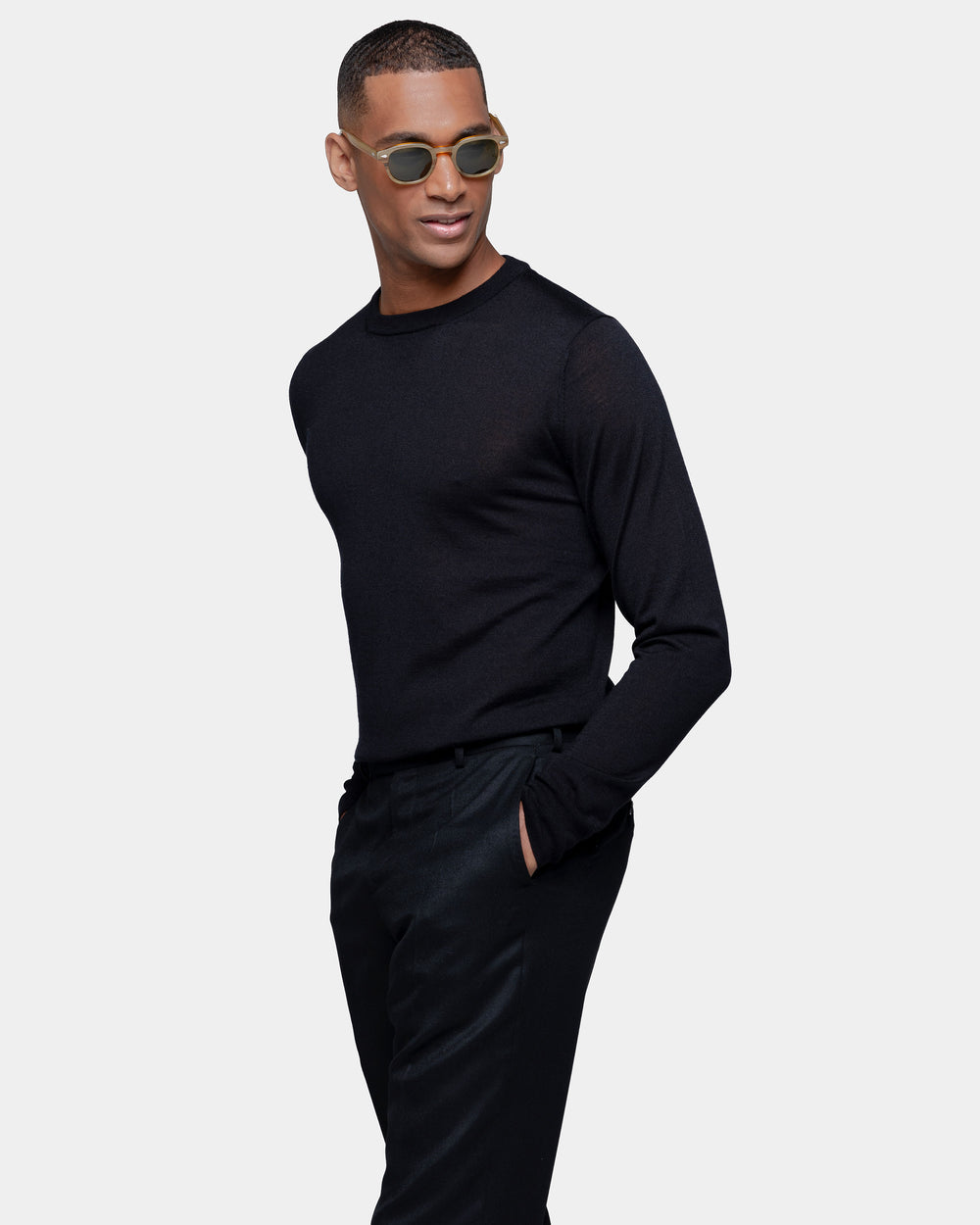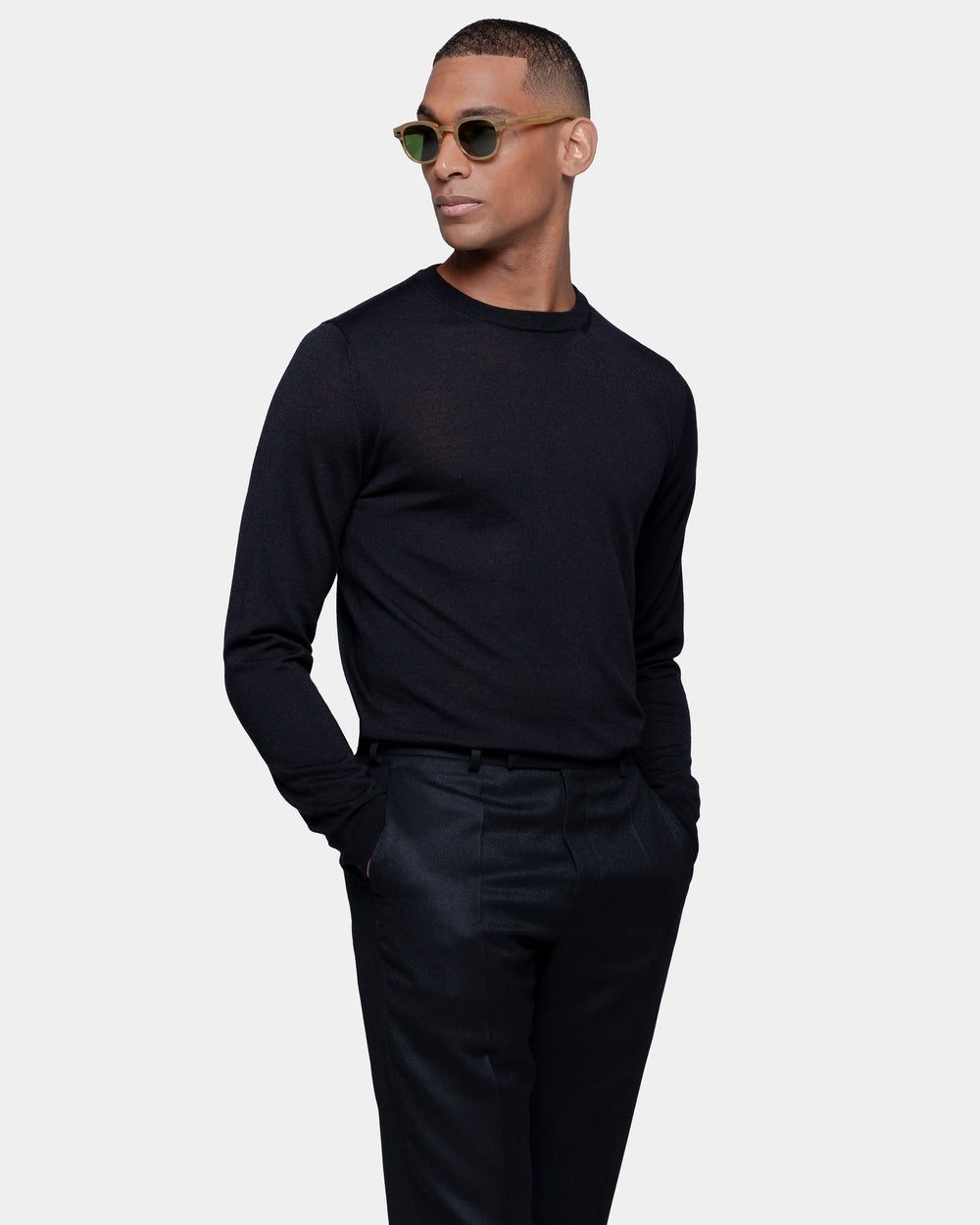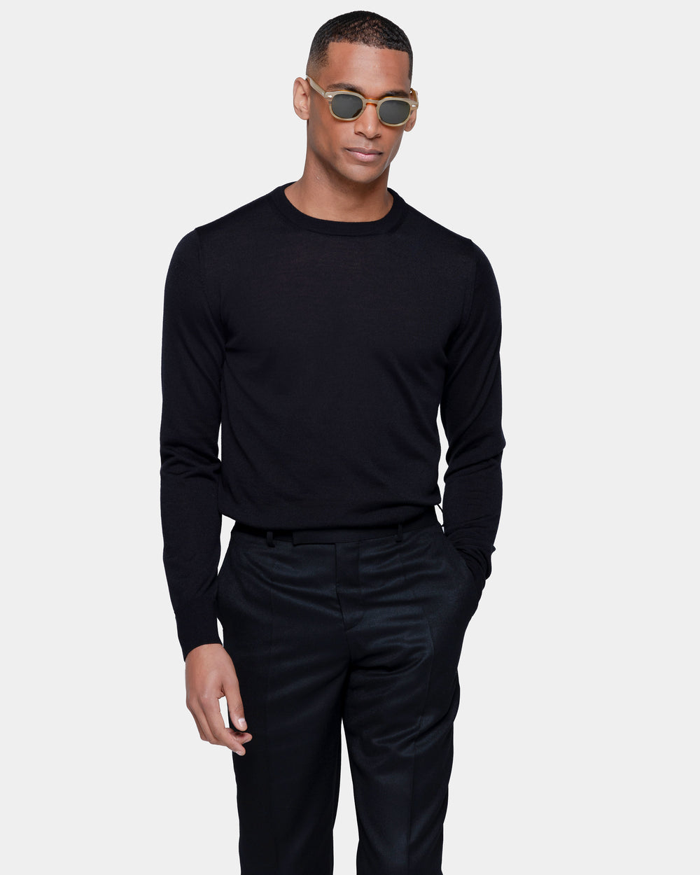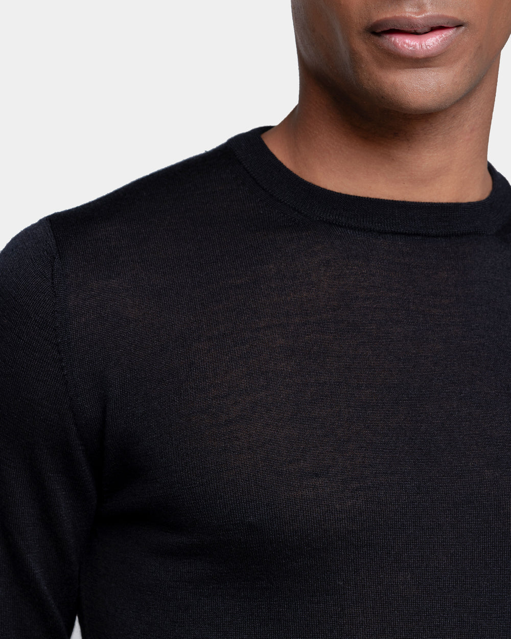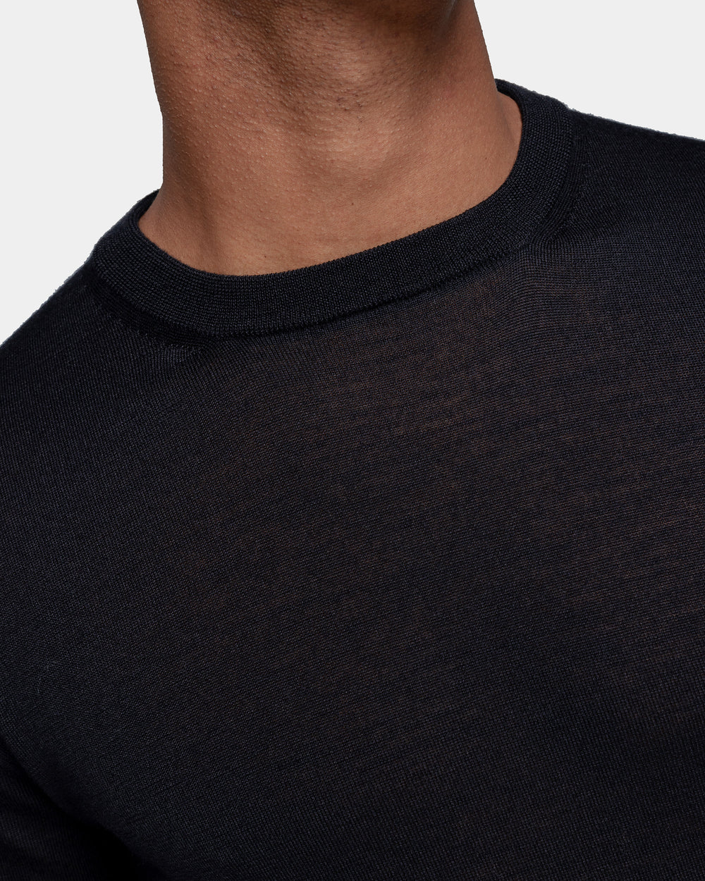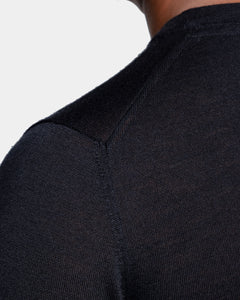 La lussuosa miscela di Lana Merino extra-fine e Seta di Filatori conferisce alla maglia un aspetto lineare in cui la mischia preziosa mette in particolare risalto la brillantezza della seta. La maglia naturale offre una sensazione di estrema morbidezza sulla pelle, trasformando un design semplice in un capo di lusso. Il colletto alto 2.2 cm dona un tocco di sartorialità aggiuntiva al capo.