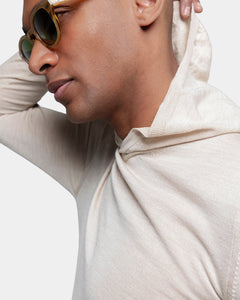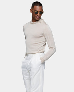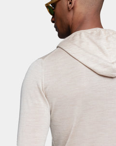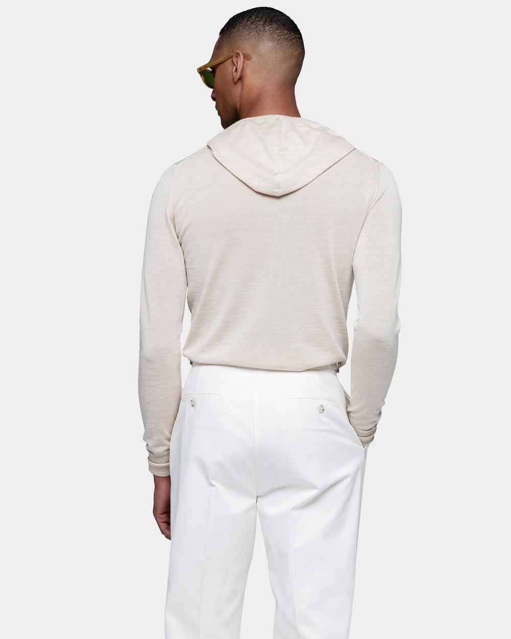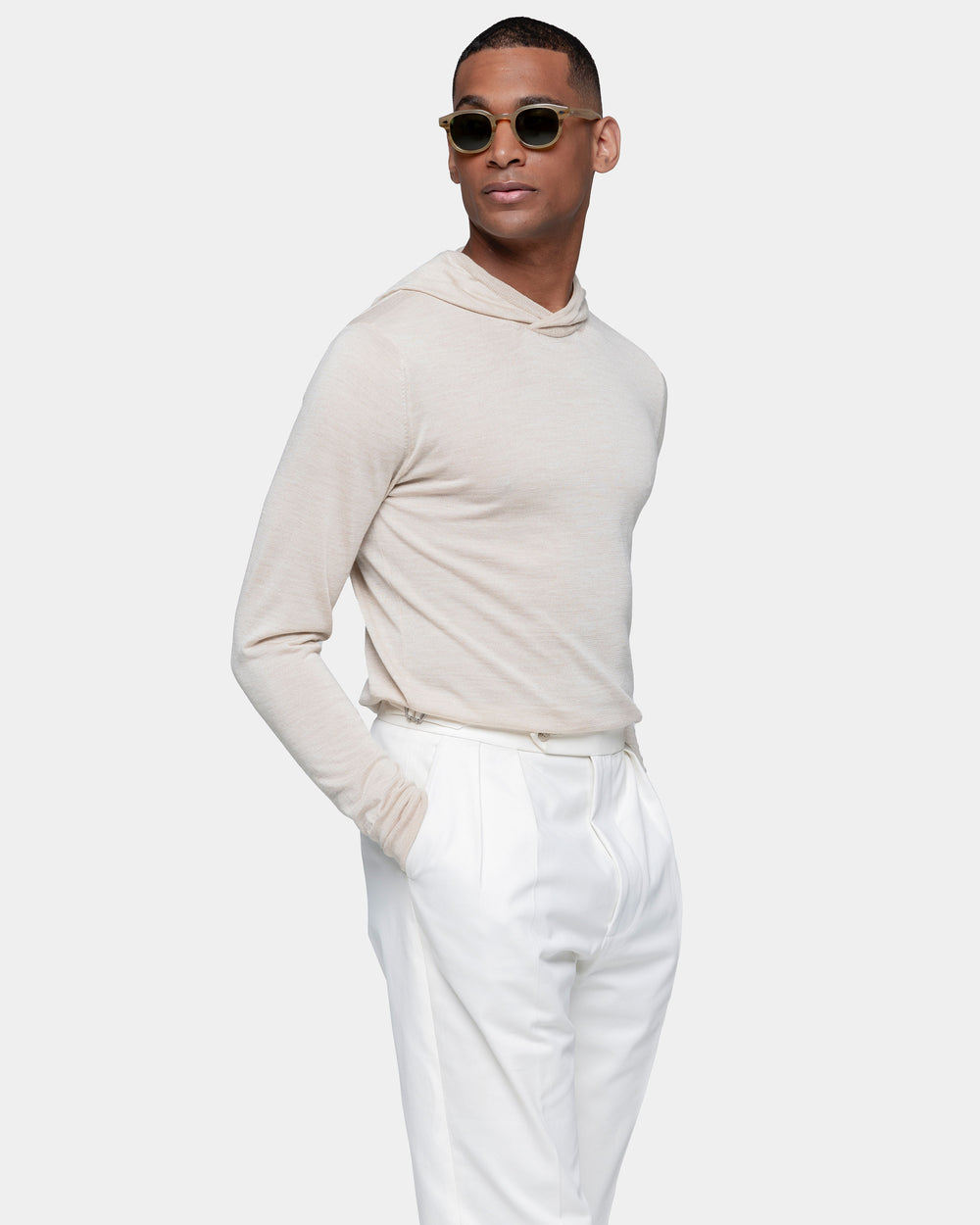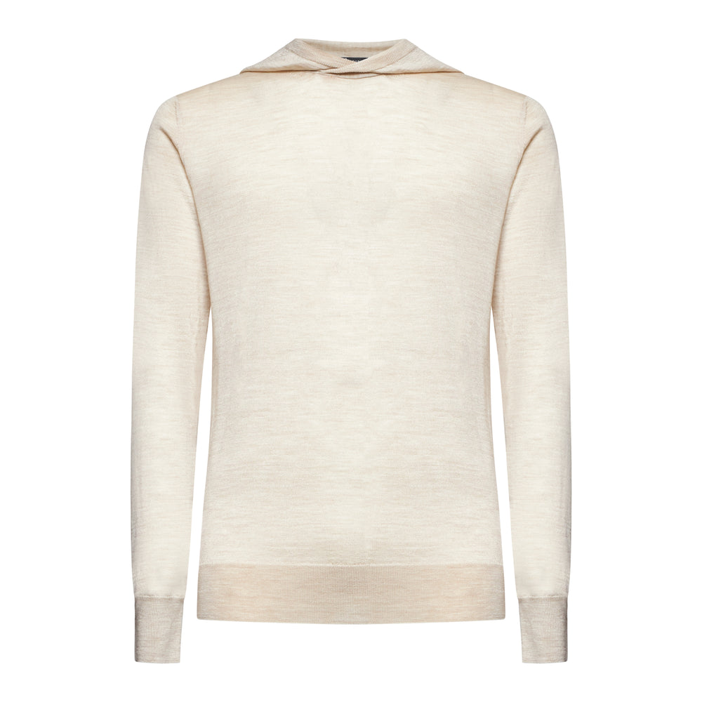 La lussuosa miscela di Lana Merino extra-fine e Seta di Filatori conferisce alla maglia un aspetto lineare in cui la mischia preziosa mette in particolare risalto la brillantezza della seta. La maglia naturale offre una sensazione di estrema morbidezza sulla pelle, trasformando un design semplice in un capo di lusso. Il colletto alto 2.2 cm dona un tocco di sartorialità aggiuntiva al capo.
