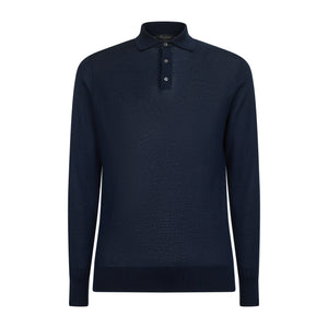 Maglia manica lunga Polo tinta unita Blu Cotone biologico e Seta Mulberry | Filatori