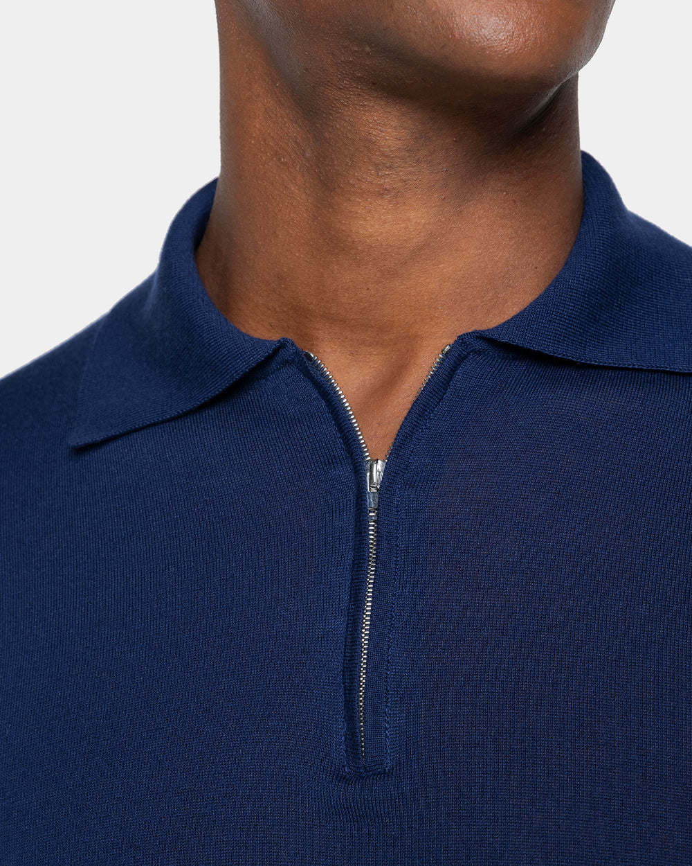 Maglia manica lunga Polo Zip tinta unita blu marino Cotone biologico e Seta Mulberry | Filatori