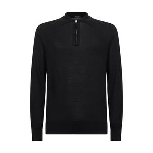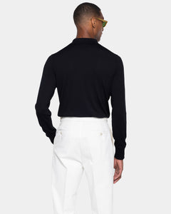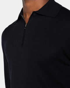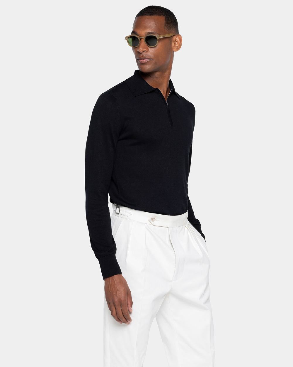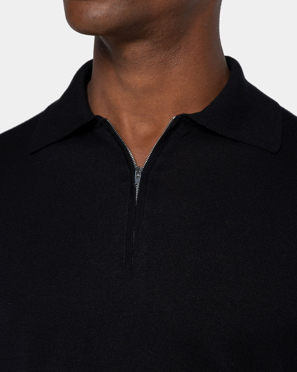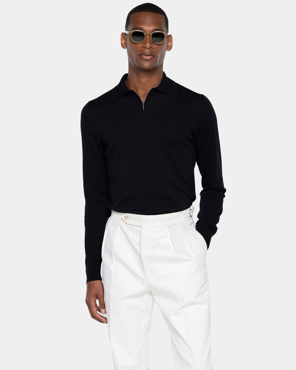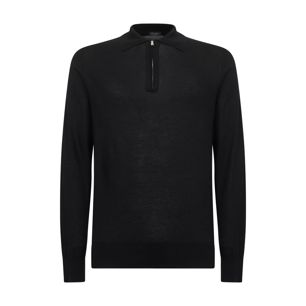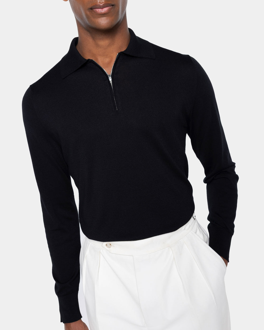 Maglia manica lunga Polo Zip tinta unita nera Cotone biologico e Seta Mulberry | Filatori