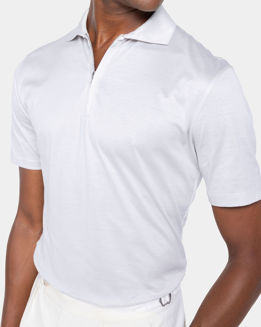 Polo mezza zip manica corta tinta unita Grigio perla 100% Cotone egiziano | Filatori