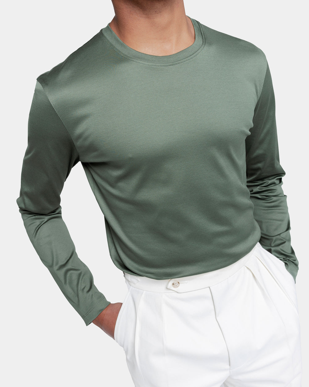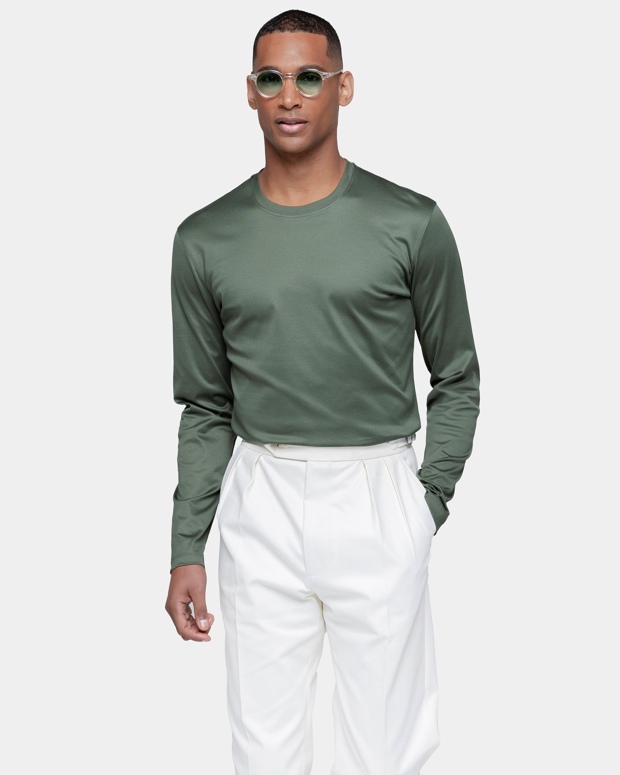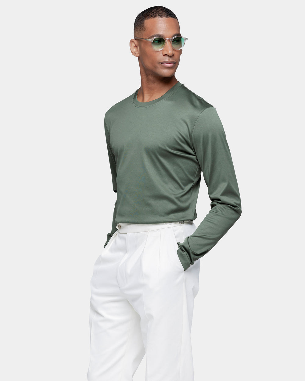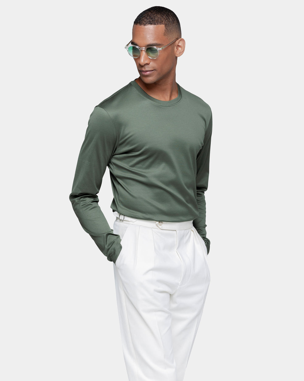 Una t-shirt manica lunga è un'ottima base per uno stile rilassato.
