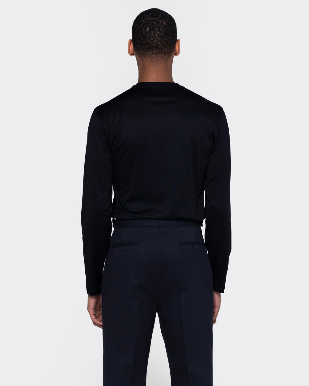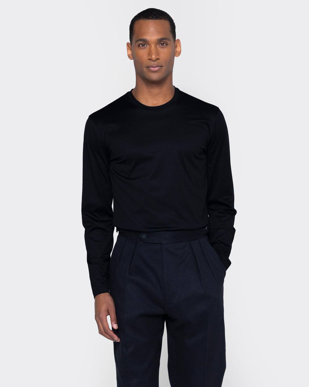 Realizzata in 100% jersey ultra-fine 120/2 cotone Supima® della tessitura italiana Tessilmaglia, dal peso di 170 g/mq, risulta corposo, brillante e dalla mano liscia e scorrevole, ed è un prezioso pass part out del guardaroba contemporaneo. Questo capo è il risultato della fedeltà Filatori per la ricerca dell'eccellenza e si caratterizza per un'elevata cura delle rifiniture e dei dettagli. Le cuciture a vista sotto lo scollo e sul giro-spalla donano un tocco di sartorialità aggiuntiva al capo. Lo scollo si presenta in una costina alta 1.8 cm in maglia a coste in filato 120/2 Supima® , dettaglio che dona un'eccezionale brillantezza al capo.