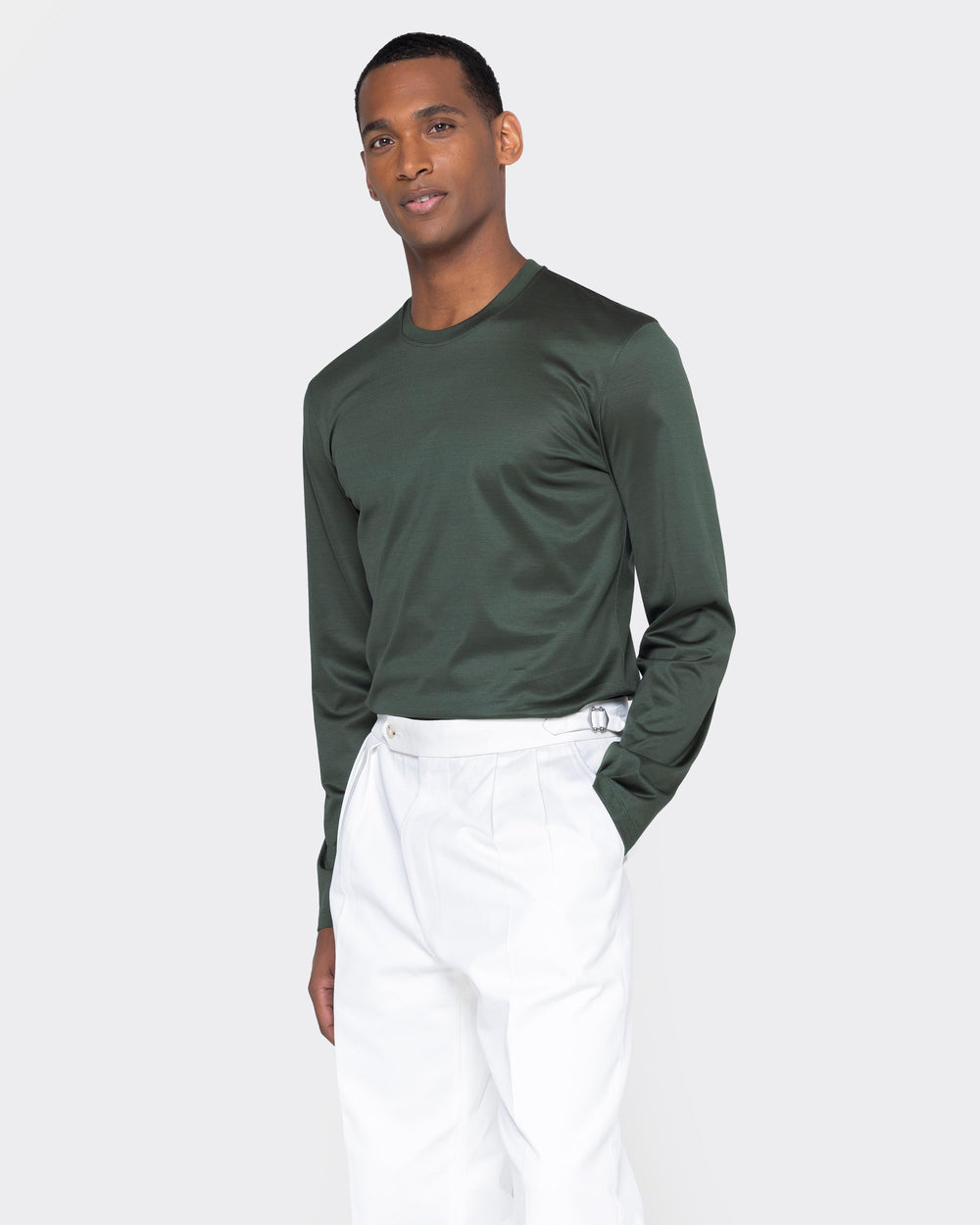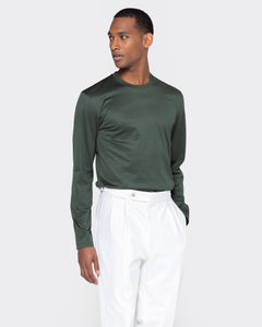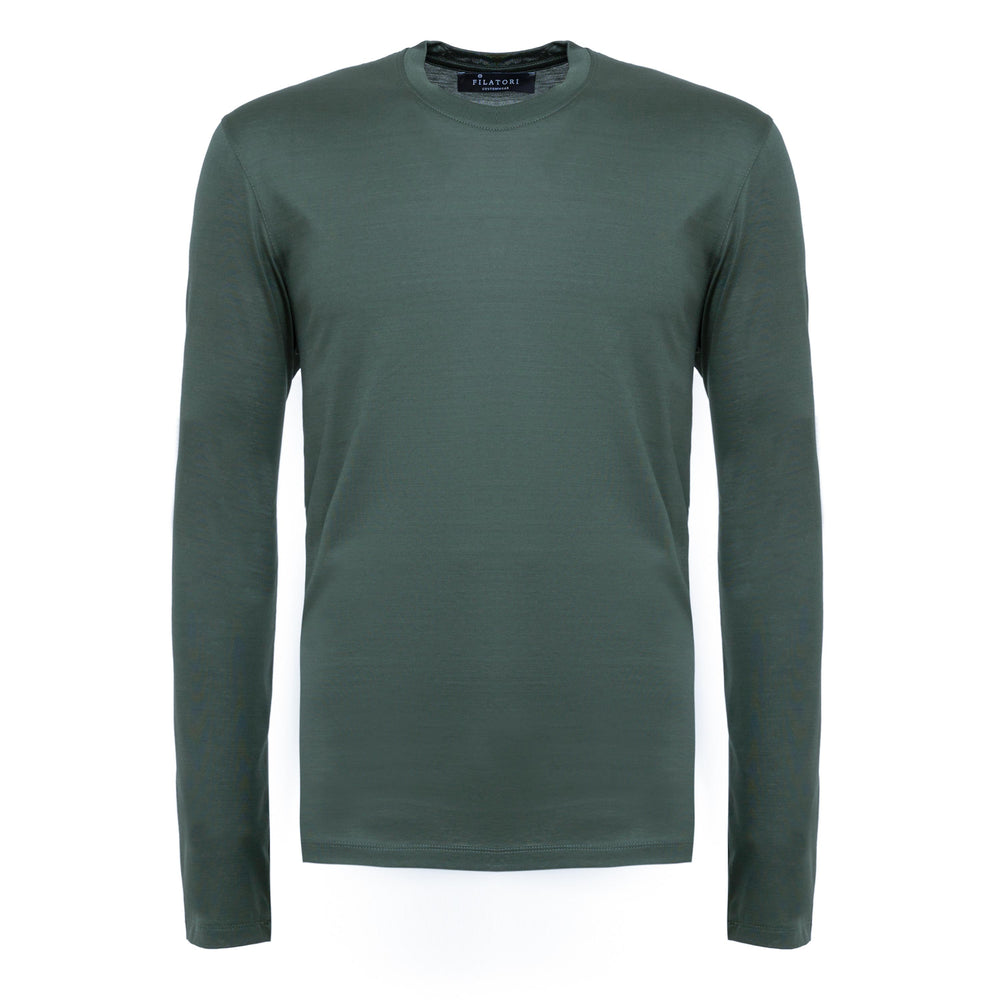 T shirt manica lunga tinta unita Verde Militare 100% Cotone egiziano | Filatori