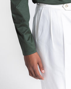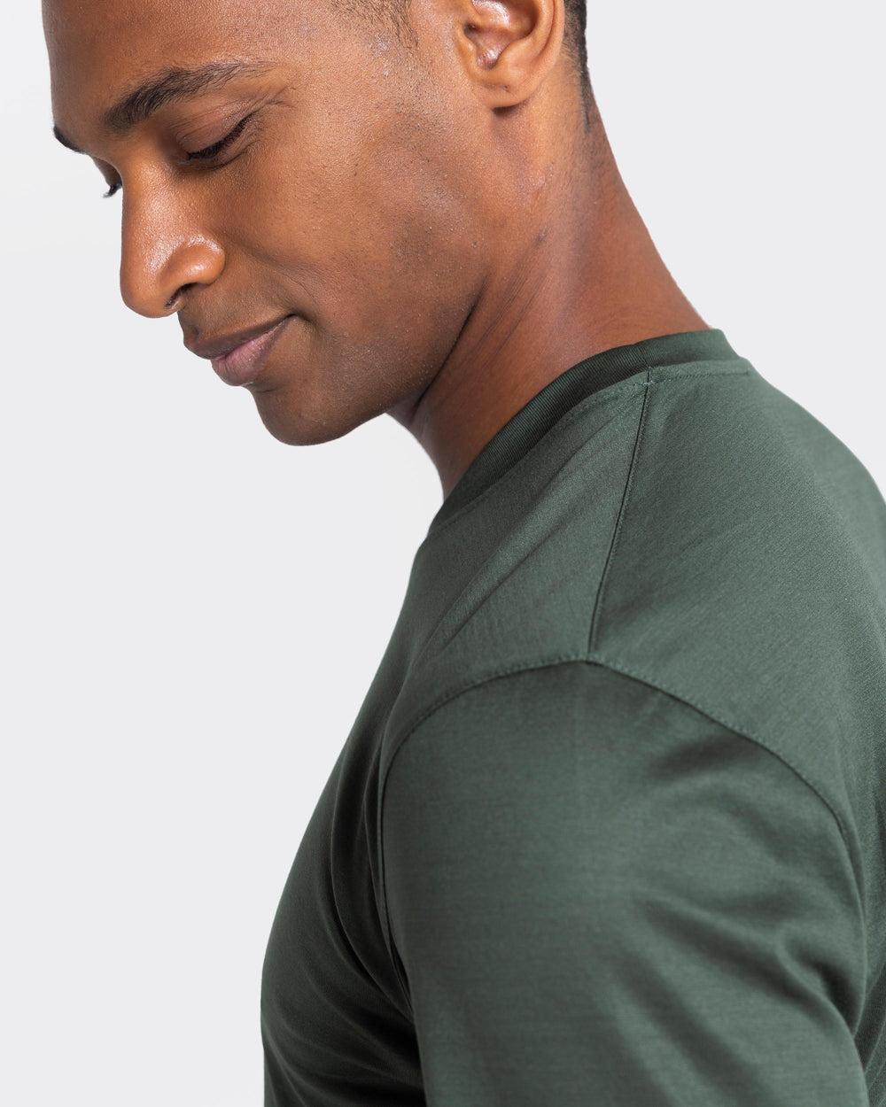 Realizzata in 100% jersey tinto filo extra-fine 80/2 cotone Filoscozia® Makò Egiziano color verde militare della tessitura italiana Tessilmaglia, risulta leggero, brillante e dalla mano liscia e scorrevole, ed è un prezioso pass part out del guardaroba contemporaneo. Questo capo è il risultato della fedeltà Filatori per la ricerca dell'eccellenza e si caratterizza per un'elevata cura delle rifiniture e dei dettagli. Le cuciture a vista sotto lo scollo e sul giro-spalla donano un tocco di sartorialità aggiuntiva al capo. Lo scollo si presenta in una costina alta 1.8 cm in maglia a coste in filato 80/2 Makò, dettaglio che dona un'eccezionale brillantezza al capo.